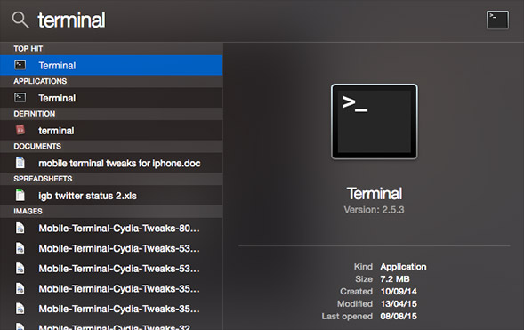 Open Spotlight by clicking the magnifying glass icon on the upper right corner of your screen